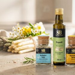 Tees, Gewürze und hochwertige Öle – regional angebaut und verarbeitet in Hessen. Rund 20 verschiedene Kräuter werden auf den eigenen Feldern im Hessischen Ried gepflanzt, geerntet und in der 8B Manufaktur zu Teemischungen und Gewürzen verarbeitet.